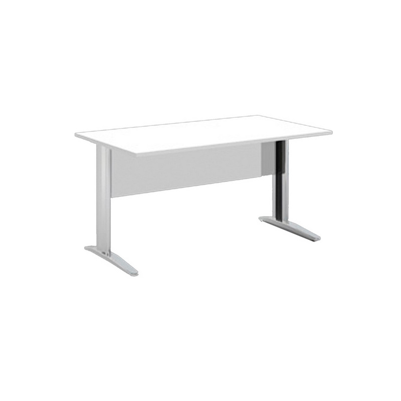 Scrivanie con dimensioni conformi alle normative sulla sicurezza dei posti di lavoro in ufficio. Bordatura dei piani in ABS 2mm antishock ed assenza di spigoli vivi. Le scrivanie sono disponibili nella versione con fianchi pannello in melaminico (sp. 22 mm) o con fianchi in metallo ad L verniciati effetto cromo completi di piedini regolabili in altezza e canalina passacavi ispezionabile. Dimensioni: L120 x P80 x H72cm