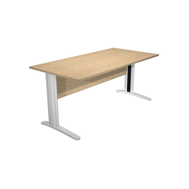 Scrivanie con dimensioni conformi alle normative sulla sicurezza dei posti di lavoro in ufficio. Bordatura dei piani in ABS 2mm antishock ed assenza di spigoli vivi. Le scrivanie sono disponibili nella versione con fianchi pannello in melaminico (sp. 22 mm) o con fianchi in metallo ad L verniciati effetto cromo completi di piedini regolabili in altezza e canalina passacavi ispezionabile. Dimensioni: L160 x P80 x H72cm