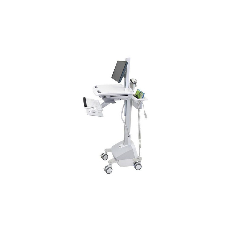 Rimanete produttivi e con la massima libertà di movimento grazie al sistema di alimentazione certificato. Questo carrello per il settore dell'assistenza sanitaria, innovativo, veramente ergonomico e facilmente manovrabile, presenta un meccanismo di regolazione dell'altezza che permette l'uso sia da seduti che in piedi, sistema di posizionamento indipendente del display e un ripiano per tastiera a inclinazione negativa regolabile.