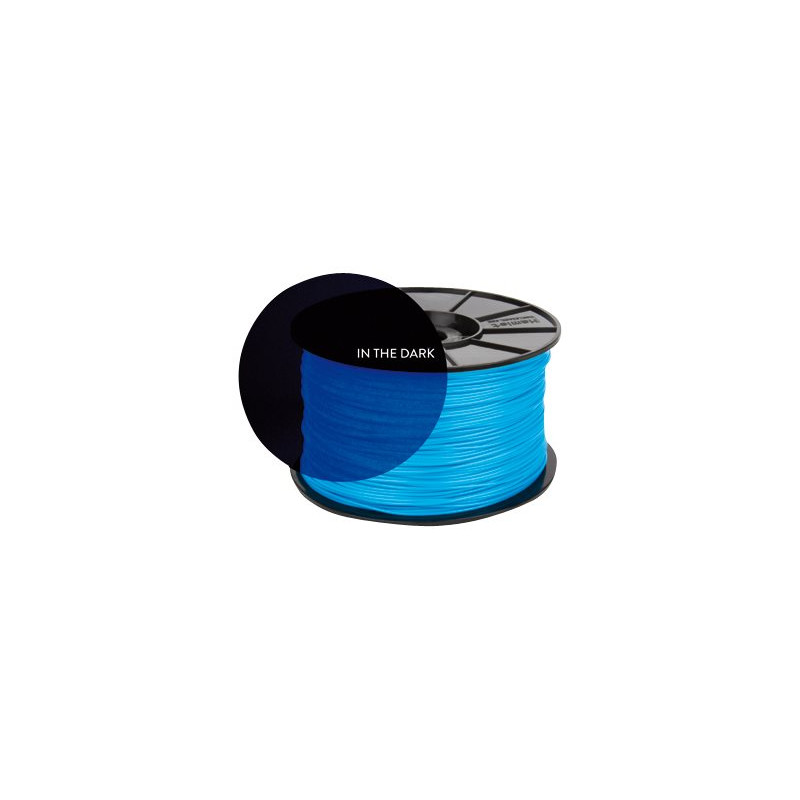 Bobina di filamento ABS blu fosforescente (si illumina al buio), materiale particolarmente adatto alla realizzazione di oggetti tridimensionali con la stampante 3D Hamlet 3DX100.