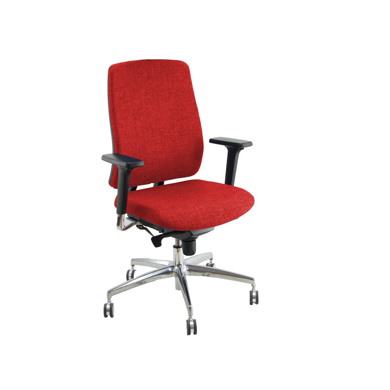 Seduta semidirezionale ergonomica girevole con elevazione a gas - meccanismo synchro con 4 blocchi anti shock - traslatore e variatore di forza a contatto - supporto lombare regolabile; Rivestimento seduta in tessuto "SUPER - King L" 100% TREVIRA reazione al fuoco classe 1. Completa di braccioli regolabili. Alt.tot.: 108-118cm; Prof.tot.: 68cm; Alt.schienale: 64cm; Larg.schienale: 50cm; Larg.seduta: 50cm; Prof.Sedile: 47-52cm; Altezza sedile: 43 - 55cm.