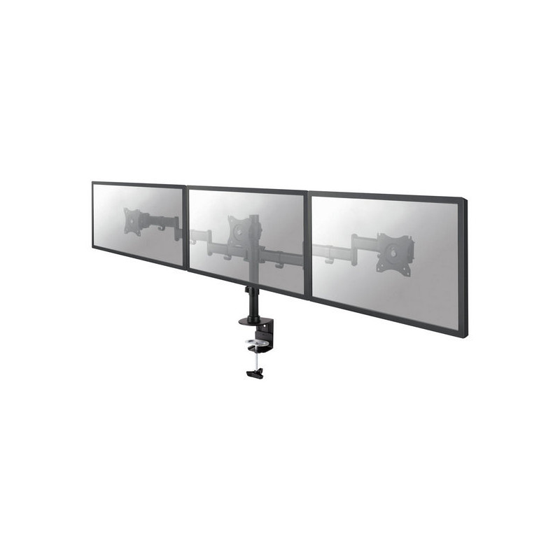 Questo braccio porta monitor Neomounts Select, modello NM-D135D3 consente di collegare due schermi LCD/LED/TFT su di una scrivania con la modalità di fissaggio su piano attraverso vite centrale o morsetto. Utilizzate un braccio porta monitor per sfruttare pienamente le capacità del vostro schermo. Il braccio è facile da regolare in altezza e profondità. È inoltre possibile inclinare lo schermo in senso verticale, orizzontale e farlo ruotare; questo crea la posizione ergonomica di lavoro ideale riducendo il rischio di mal di schiena e al collo. I cavi possono essere collocati sul lato inferiore del braccio. Il supporto NM-D135D3 ha 4 punti di articolazione ed è adatto a schermi fino a 27" con una capacità massima di trasporto di 24kg.