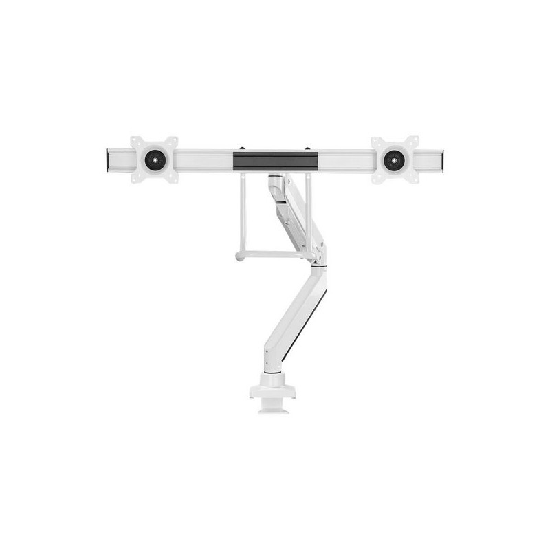 Questo braccio porta monitor Neomounts Select, modello NM-D775DX consente di collegare due schermi LCD/LED/TFT su di una scrivania con la modalità di fissaggio su piano attraverso un morsetto o vite centrale. Utilizzate un braccio porta monitor per sfruttare pienamente le capacità del vostro schermo. Il braccio è facile da regolare in altezza e profondità. È inoltre possibile inclinare lo schermo in senso verticale, orizzontale e farlo ruotare; questo crea la posizione ergonomica di lavoro ideale riducendo il rischio di mal di schiena e al collo. I cavi possono essere collocati sulla parte inferiore del braccio. Il supporto NM-D775DX con maniglia ha tre punti di articolazione è adatto a schermi fino a 32" con una capacità massima di trasporto da 1 a 16kg.