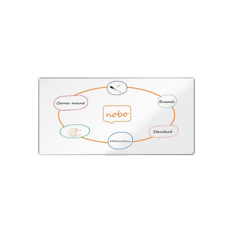 Lavagna bianca magnetica smaltata con una moderna ed elegante cornice in alluminio. Dotata di sistema di montaggio angolare e di un'ampia vaschetta porta accessori per depositare pennarelli e cancellini. La superficie della lavagna magnetica laccata offre un livello superiore di cancellabilità e durerà per un uso frequente.