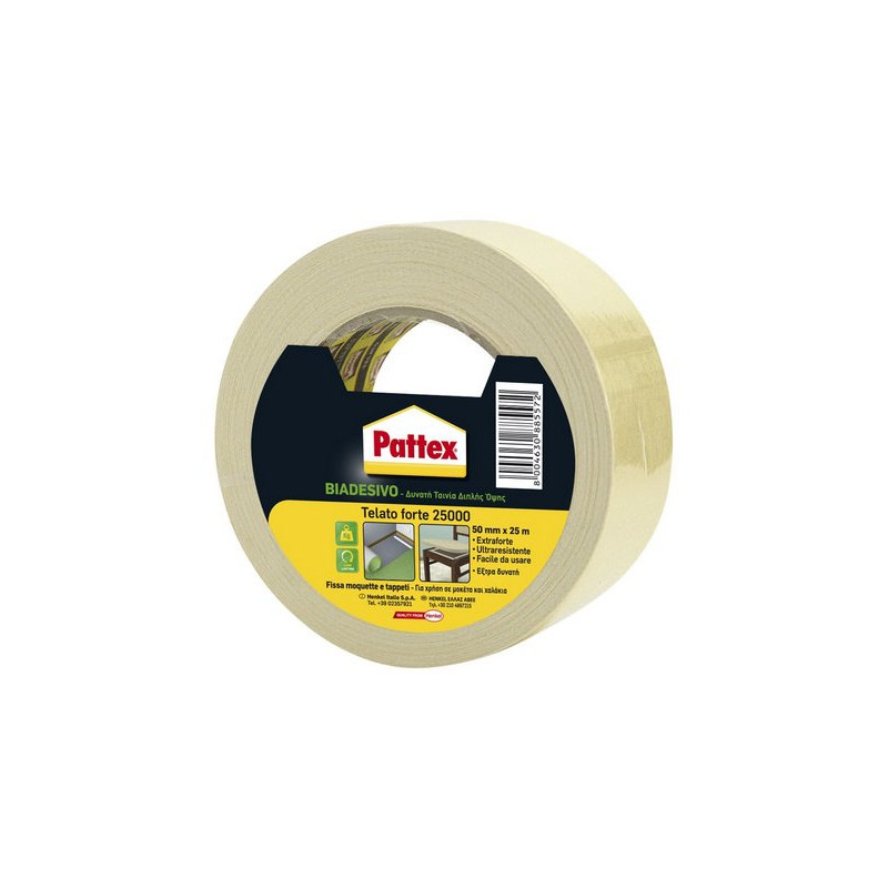 Questo è il nastro adesivo con supporto in garza di cotone e adesivo a base di gomme sintetiche e resine accoppiato a carta bisiliconata. Particolarmente forte, è indicato per l'applicazione della moquette e per numerosi utilizzi domestici e del fai da te.