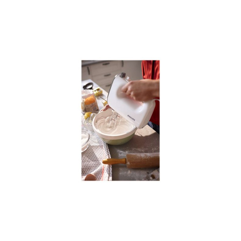 Il mixer di Philips ti aiuta a preparare deliziose torte al cucchiaio e pane per tutta la famiglia. La forma conica delle fruste permette di abbreviare il tempo di montatura e di creare un impasto per dolci più uniforme. Il suo potente motore da 450 W ti consente di lavorare senza fatica anche gli impasti più difficili.