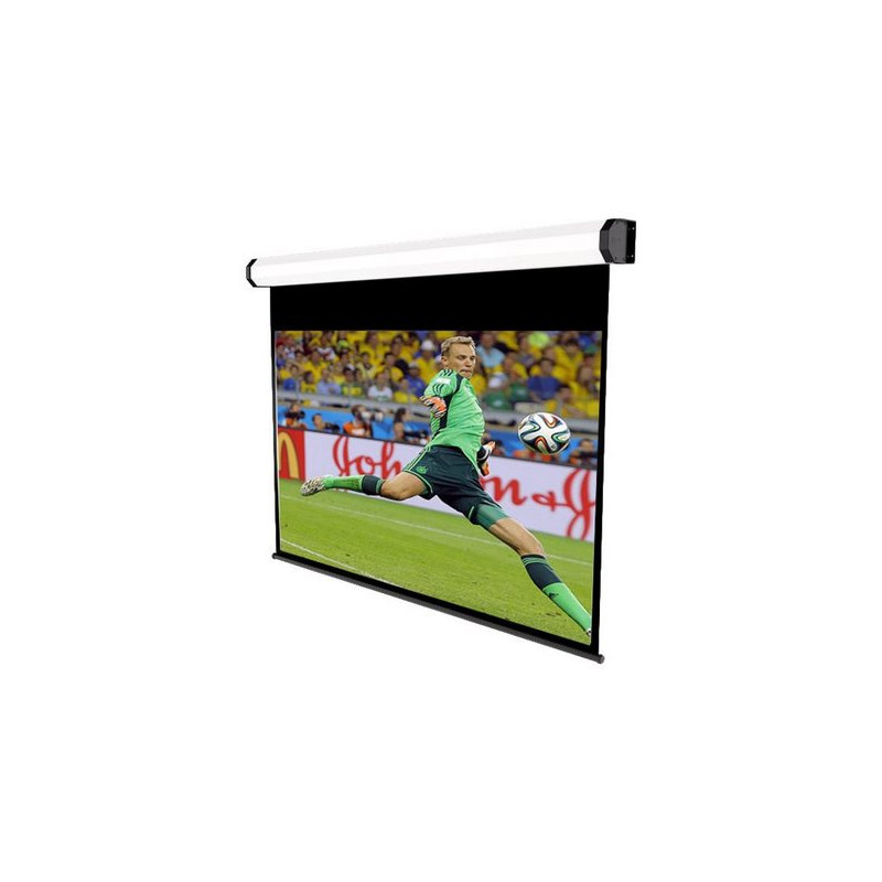 Lo schermo ad avvolgimento elettrico Professional realizzato con Tela Certificata M1 del Tipo Ignifugo ad Alta Riflettenza, è alloggiato in cassonetti di alluminio anodizzato e mosso da un motore di assoluta affidabilità. È facilmente montabile a parete o a soffitto mediante l'utilizzo di supporti in alluminio 'Bracket' combinati con un alloggio ad incastro nel telaio dello schermo (Easy Lock System).