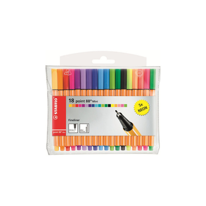 >Cancelleria>Marcatori>STABILO point 88 Mini - Penna punta in fibra - colori assortiti - inchiostro base acqua - 1 mm - medio (pacchetto di 18)