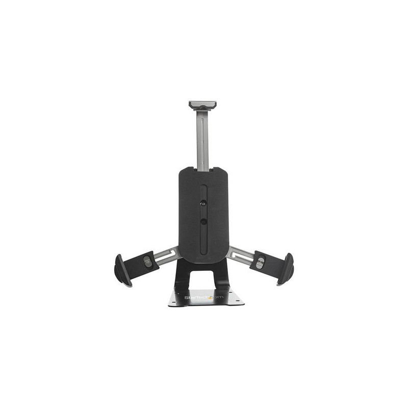 Questo supporto universale per tablet consente di installare e utilizzare un tablet come secondo display o come terminale POS e allo stesso tempo poter accedere a tutte le porte, i pulsanti e le fotocamere. È compatibile con i tablet di dimensioni comprese tra 7,9' e 13' con spessore fino a 7,6 mm e peso fino a 0,7 kg. Le staffe di presa estensibili e bloccabili mantengono il tablet in posizione per evitare che scivoli dal supporto mentre si interagisce o si digita su di esso.
