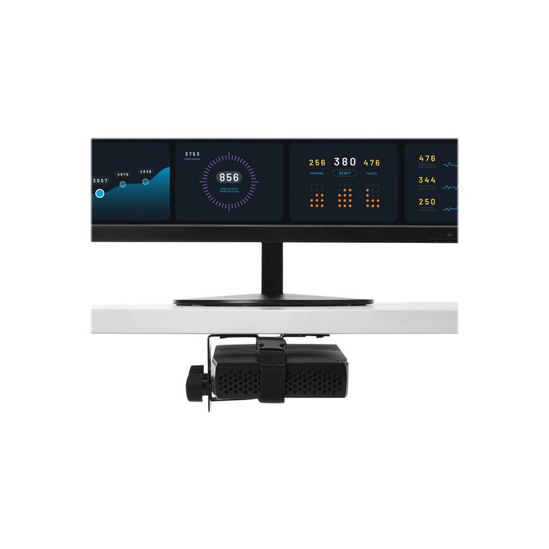 La staffa regolabile è perfetta per i sistemi Intel NUC, i Mac Mini, la maggior parte delle CPU di piccole dimensioni, i thin client, le docking station o gli hub USB di dimensioni compatibili con le impostazioni di larghezza consentite (comprese tra 17 mm e 70 mm). È in grado di sostenere un peso fino a 5 kg. Il dispositivo è inoltre provvisto di una bretella regolabile, che consente di fissare in sicurezza i dispositivi, e da piedini in gomma, che assicurano una maggiore protezione dei prodotti sulle superfici non parallele.