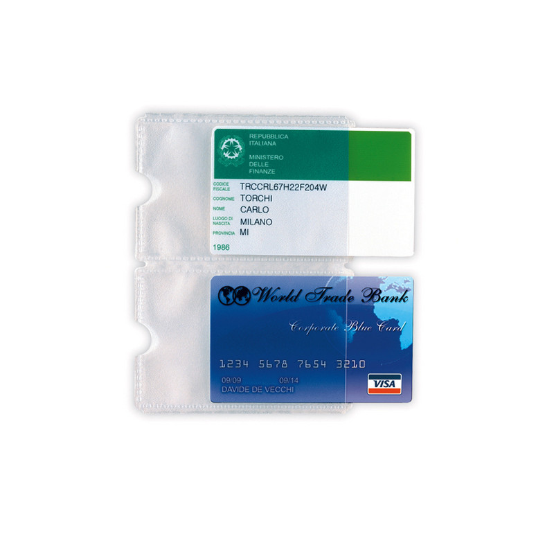 Espositore con porta carte di credito, schede telefoniche, tesserini di riconoscimento, nuovepatenti,viacard,tessere ACI, etc. In polipropilene buccia.