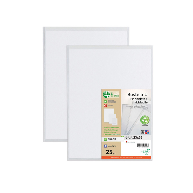 Nuovo Buste a sacco Gaia - PP riciclato - 23 x 33 cm - buccia - trasparente - Sei rota - conf. 25 pezzi Visualizza ingrandito