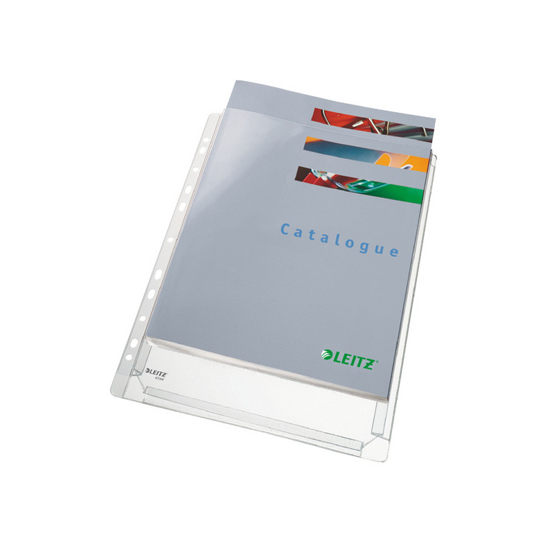 Buste a perforazione universale ad alta capacità sono realizzate in PVC morbido da 170 antiriflesso, altissima qualità. Ideali per documenti voluminosi e ad alto spessore, sono dotate di doppie saldature rinforzate su 3 lati e bordi arrotondati senza sporgenza per il massimo comfort. Capacità 200 fogli. Banda perforata rinforzata 500micron. Soffietto estensibile da 2cm. Formato utili 22x30cm. Confezione da 10 buste.