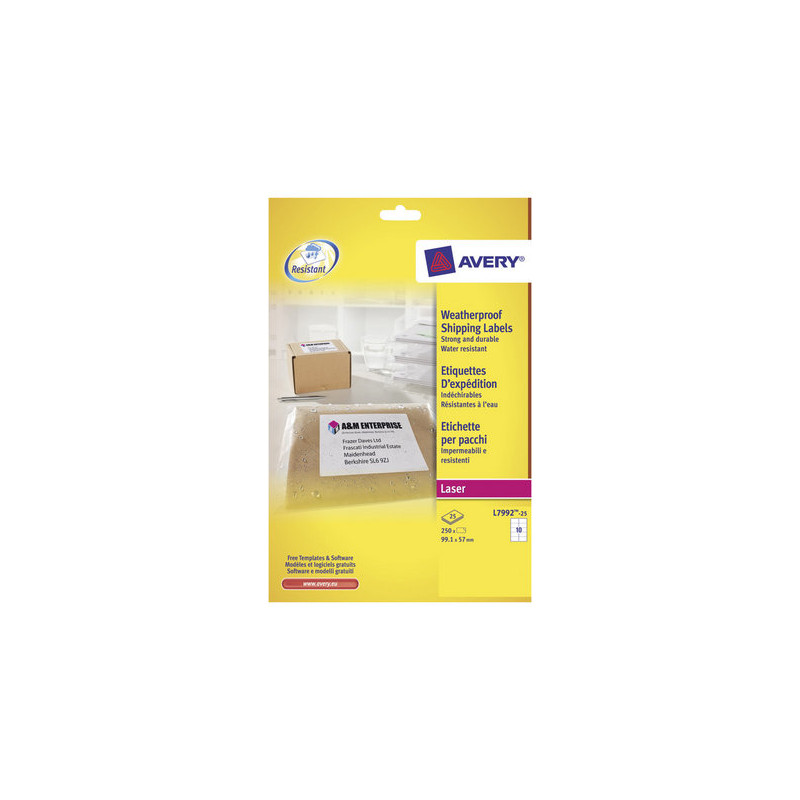 Avery Zweckform L7992 - Adesivo permanente - bianco - 57 x 99.1 mm 250 etichette (25 foglio(i) x 10) etichette di spedizione