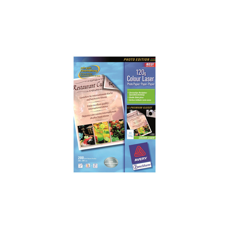 >Carta>Carta fotografica>Avery Zweckform Superior Colour Laser Paper 1198 - Lucido - bianco - A4 (210 x 297 mm) - 120 g/m² - 200 fogli carta fotografica
