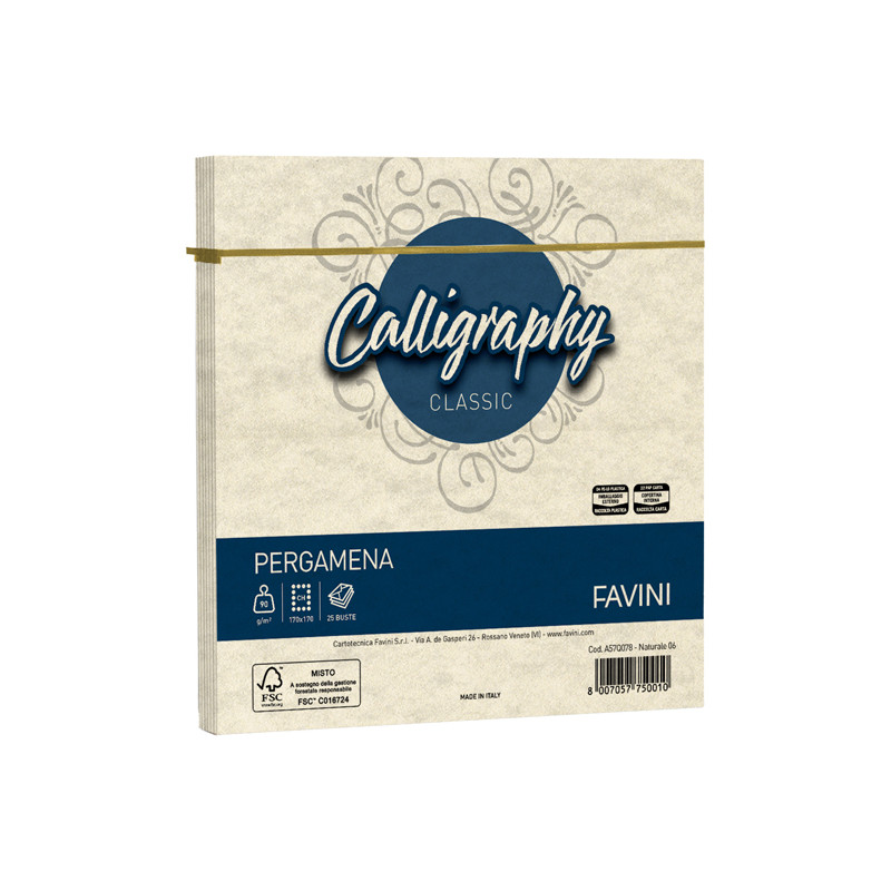 >Cancelleria>Buste in carta>Busta Calligraphy Pergamena - 170 x 170 mm - 90 gr - naturale 06 - Favini - conf. 25 pezzi
