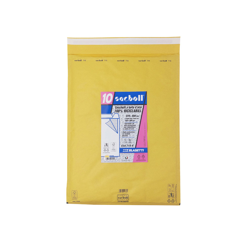 Sacco in carta avana certificata FSC imbottito con pluriboll. Polietilene a bolle. Termosaldato su tre lati.Lembo autoadesivo protetto da Strip