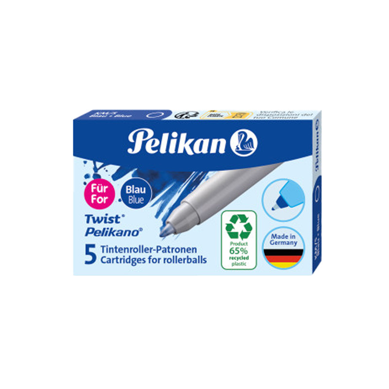 Cartucce con punta in feltro incorporata. Adatte per sferografiche Grand Prix, Twist® e Griffix®. Ogni astuccio contiene 5 cartucce. Realizzate con il 65% di plastica riciclata.