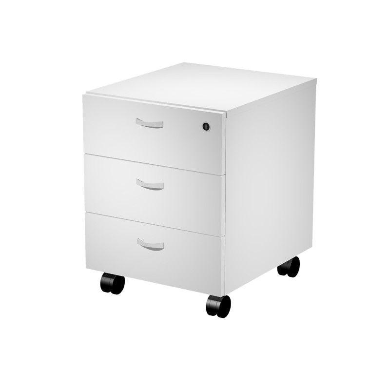 Cassettiera a 3 cassetti con serratura sul primo cassetto, guide metalliche con fermo a fine corsa, dimensione L41,5xP49,5xH57,6cm, fornita montata. Dimensione: L41,5xP49,5xH57,6cm.