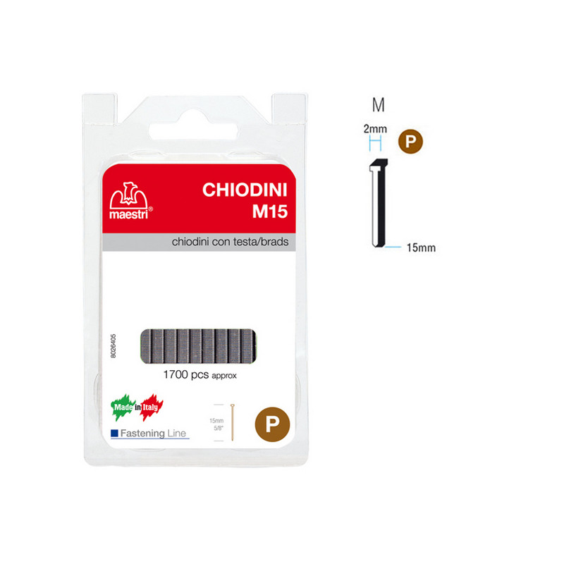 Chiodini M15 per fissatrici - con testa - 15 mm - acciaio - Romeo Maestri - conf. 1700 pezzi