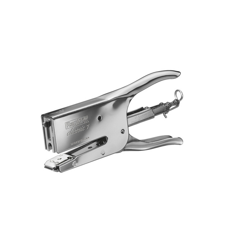 Cucitrice a pinza in acciaio cromato con piastrina di ribattitura regolabile per la scelta di cucitura. Capacità carica: 150punti. Cucitura: punto chiuso o aperto. Capacità di cucitura fino a 50fg. Profondità di cucitura 56mm. Utilizza punti 24/6-8. La più venduta nel mondo e la preferita dai fiorai. Ideale per uffici di smistamento, posta, negozi e grandi magazzini.