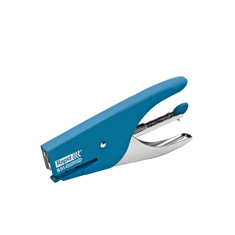 Cucitrice in acciaio con trattamento gommato che la rende piacevole al tatto e sicura nell'impugnatura. Capacità carica: 200 punti. Profondità cucitura 42mm. Cucitura: punto chiuso fino a 15fg. Utilizza punti Rapid 21/4.