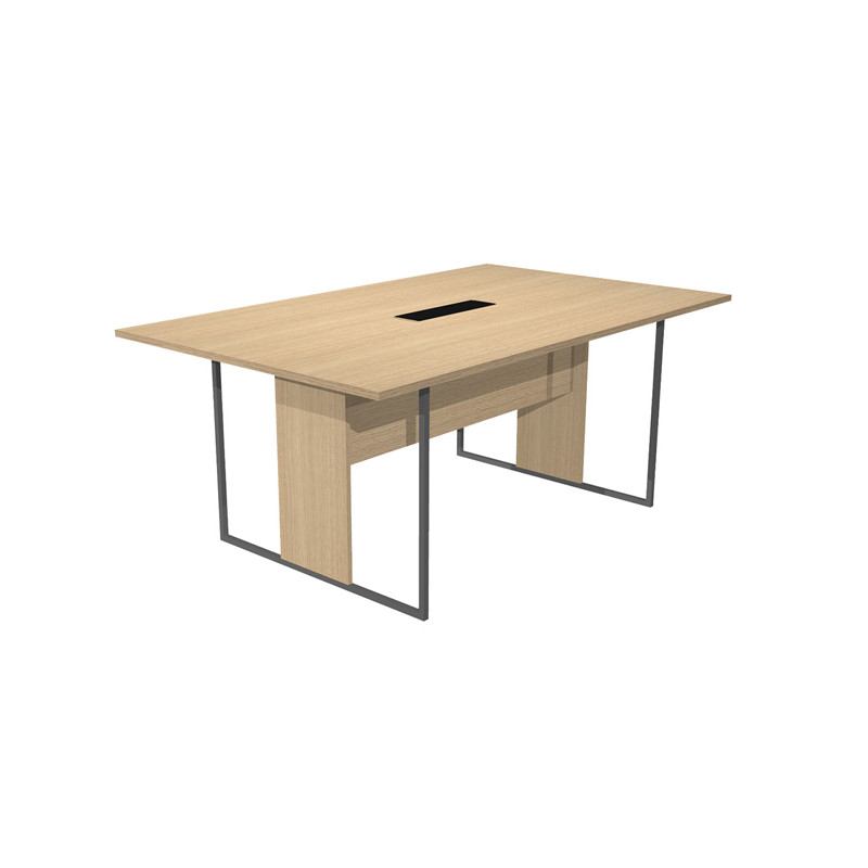 Desktop in melaminico bilaminato sp.22mm. 2 modesty panel strutturali in melaminico bilaminato H35cm (sp.18mm). Gambe ad anello in metallo a sezione quadrata 20x200mm verniciate a polveri epossidiche complete di piedini regolabili in altezza e montante strutturale in melaminico bilaminato di larghezza 30cm (spessore 18mm). Larghezza gamba 90cm.