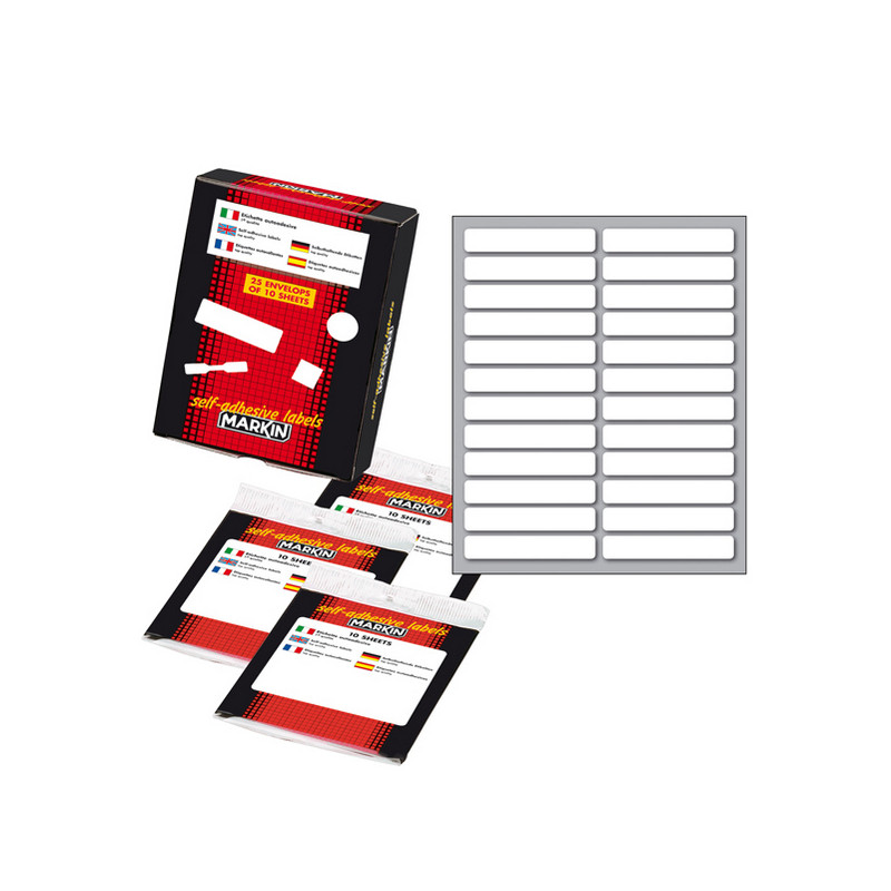>Cancelleria>Etichette>Etichette adesive - in carta - permanenti - 56 x 10 mm - 24 et/fg - 10 fogli - bianco - Markin