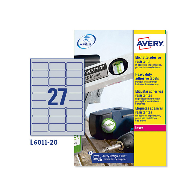 a +150°C. Perfette per uso esterno, resistono all'acqua, allo sporco, agli strappi e ai raggi UV. Possono essere applicate su metallo, vetro, plastica e legno. Confezione da 20fg A4.