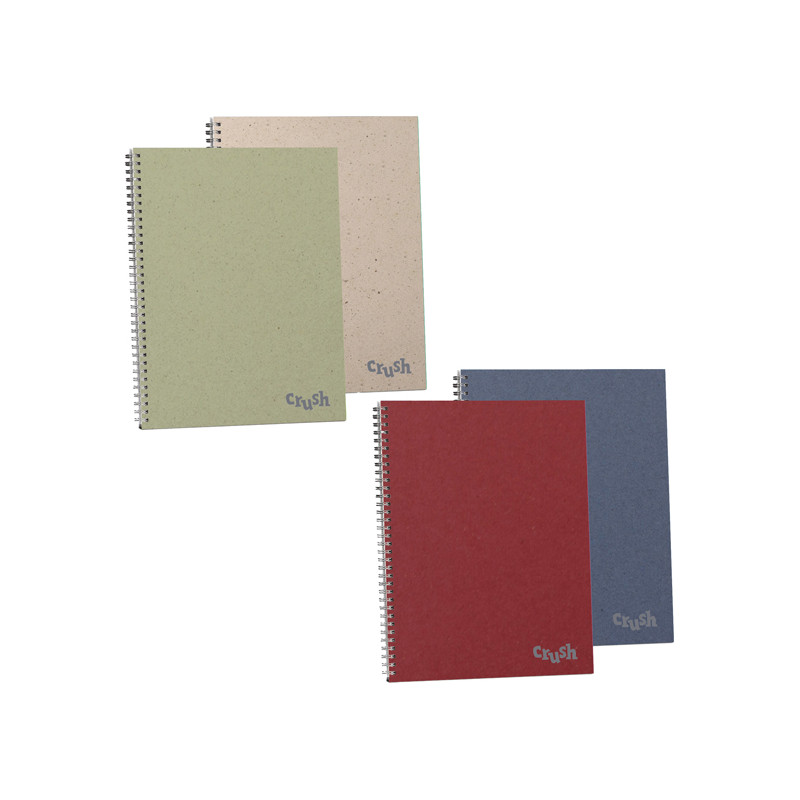 Quaderno Crush spiralato realizzato con il 15% di residui di ciliegie, kiwi, lavanda e cacao e prodotto con energia rinnovabile. Riciclabile e biodegradabile.