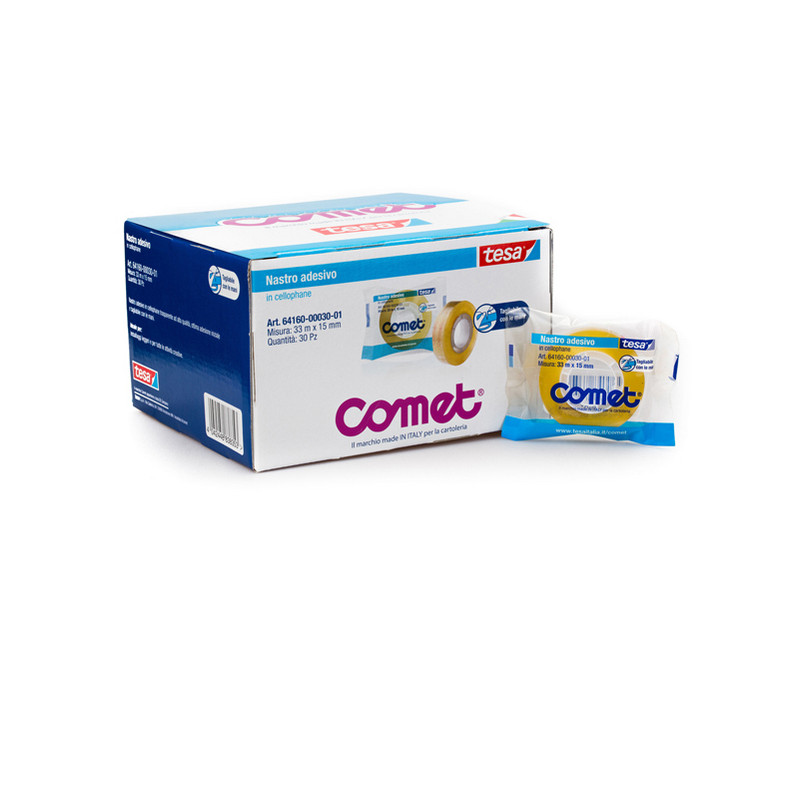 Nastro adesivo - confezionato singolarmente - 15 mm x 33 m - cellophane - trasparente - Comet