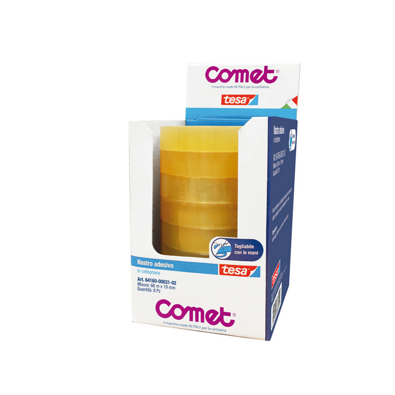 Nastro adesivo - confezionato singolarmente - 19 mm x 66 m - cellophane - trasparente - Comet