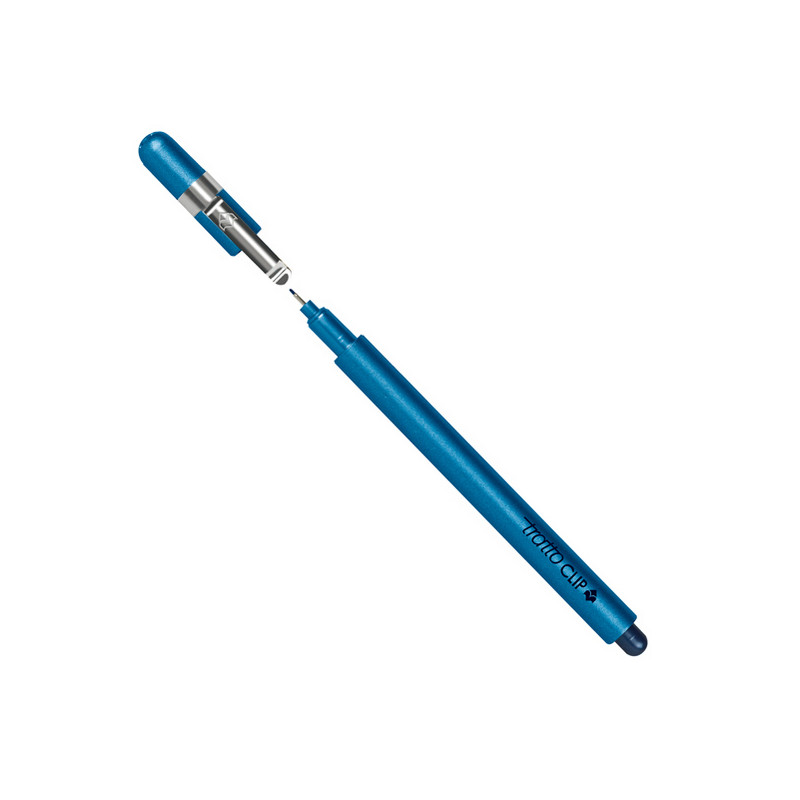 Pennarello con punta sintetica Made in Italy con inchiostro a base acqua. Corpo metallizzato e tubetto di sostegno e clip in acciaio inox. Punta extra fine e resistente per una scrittura sottile e precisa. Tratto da 0,3mm. Lunghezza di scrittura 2.000 mt. Colore blu.