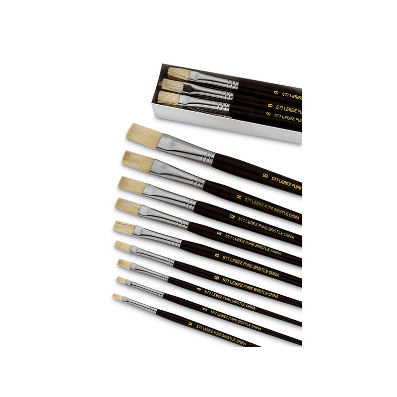 Pennello punta piatta serie 577 - punta a spatola in pura setola - n.14 - Lebez