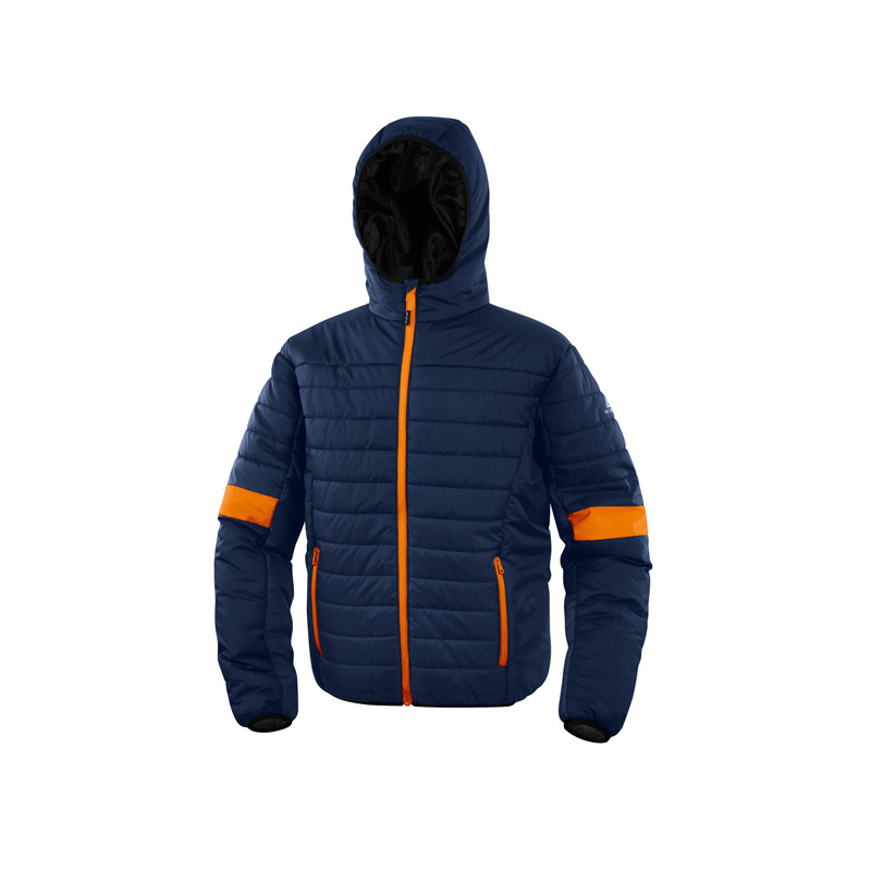 Piumino impermeabile unisex con imbottitura in fibra di poliestere 100% riciclata e tessuto antistrappo Ripstop. Cappuccio fisso e chiusura con zip. 2 tasche esterne con zip e 1 interna. Su ordinazione tutte le taglie da S a 3XL.
