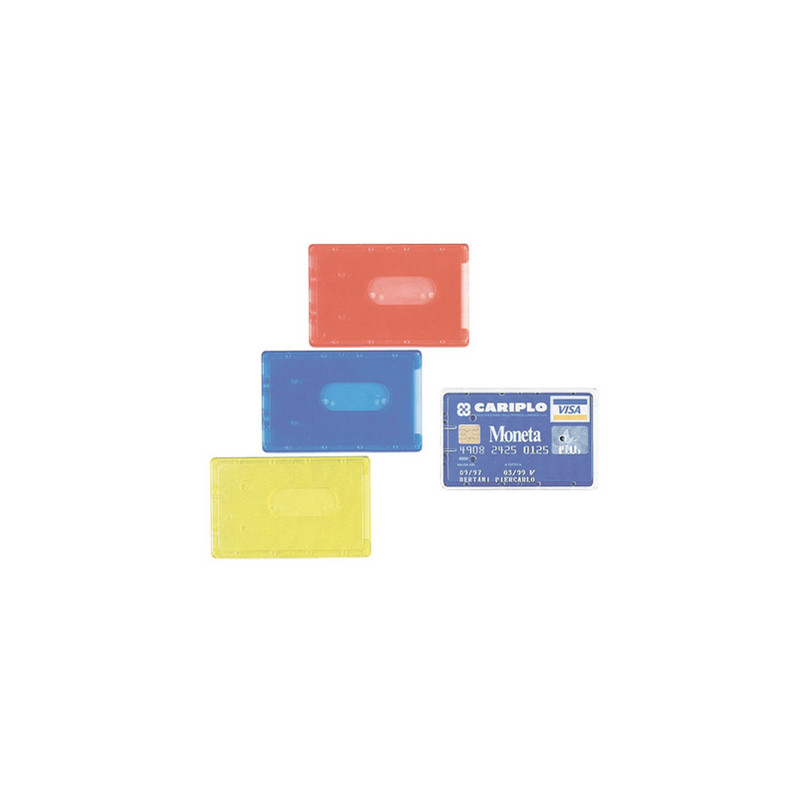 Portacards realizzati in materiale plastico rigido ad alto spessore semi trasparente. Particolarmente indicati per proteggere carte di credito, bancomat, codice fiscale, schede telefoniche, ecc. Apertura sul lato corto e foro posteriore per facilitare l'inserimento e la fuoriuscita della carta. Formato utile 8,5x5,4cm. Made in Italy