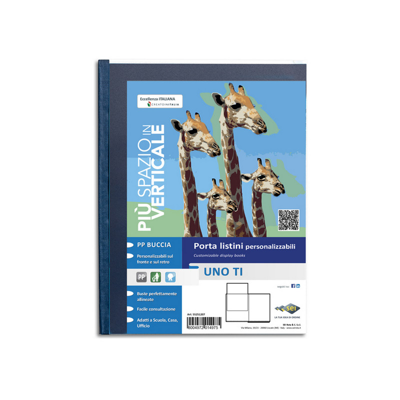 Portalistini personalizzabili a 18 buste in PP buccia, con copertina e retro personalizzabili. Il perfetto allineamento delle buste e la particolare saldatura facilitano la consultazione. Ideali per archiviare disegni, fotografie, stampe, posters, progetti e cartine geografiche. Formato contenuto 500x700mm.