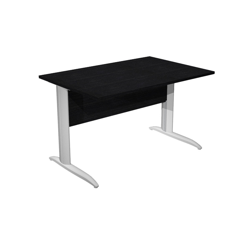 Scrivanie con dimensioni conformi alle normative sulla sicurezza dei posti di lavoro in ufficio. Bordatura dei piani in ABS 2mm antishock ed assenza di spigoli vivi. Le scrivanie sono disponibili nella versione con fianchi pannello in melaminico (sp. 22 mm) o con fianchi in metallo ad L verniciati effetto cromo o grigio alluminio RAL 9006, completi di piedini regolabili in altezza e canalina passacavi ispezionabile. Dimensioni: L140 x P80 x H72cm