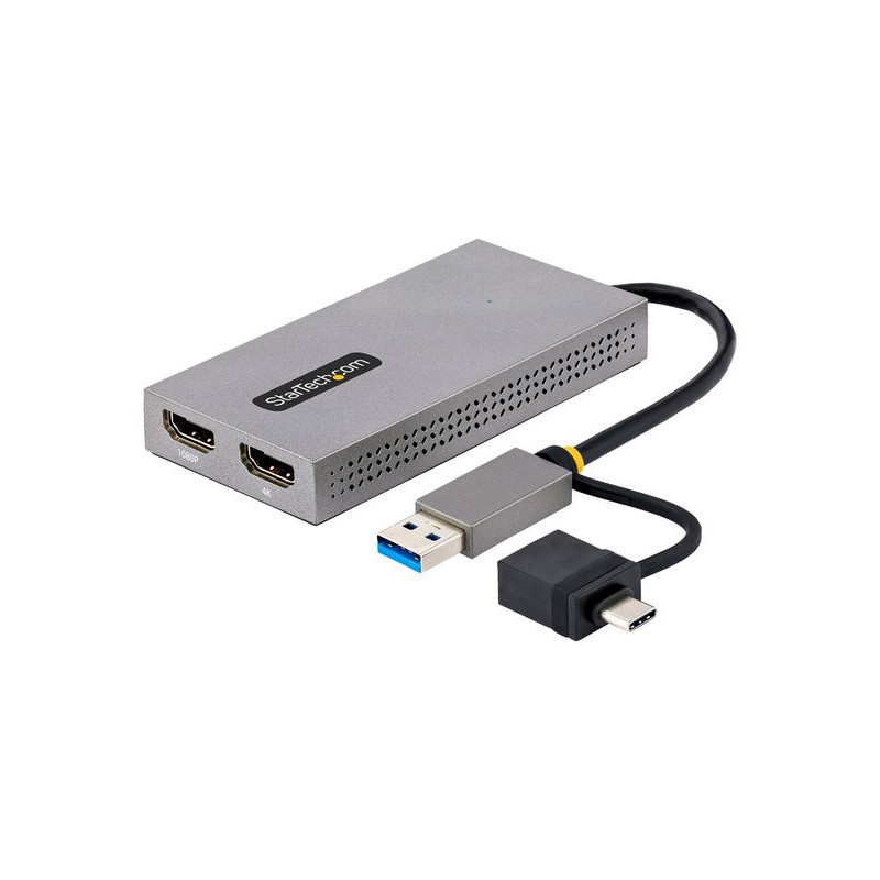 Questo adattatore USB a doppio HDMI ti permette di aggiungere due schermi HDMI indipendenti (uno 4K e uno 1080p) al tuo computer, usando solo una connessione USB Type-A 3.2 Gen 1 (5 Gbps).