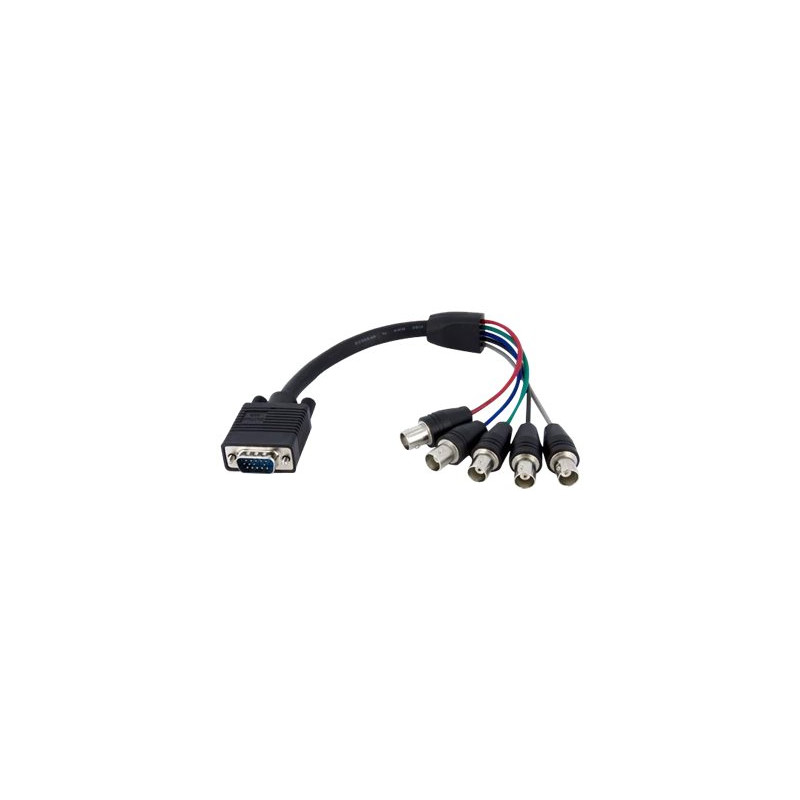Il cavo adattatore coassiale HD15 VGA a 5 BNC RGBHV da 30 cm VGABNCMF1 presenta un connettore HD15 VGA (maschio) e 5 connettori BNC (RGBHV) (femmina) permettendo il collegamento della sorgente video BNC esistente all''amplificatore di distribuzione VGA o al PC.