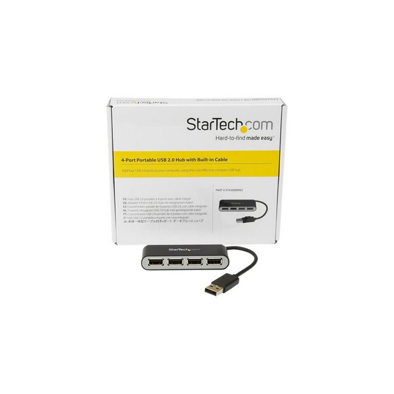 Le quattro porte USB 2.0 sono tutte collocate su un lato, in modo da garantire un facile accesso durante la connessione o la disconnessione dei dispositivi. È facile anche connettere dispositivi USB con connettori di dimensioni più grandi, perché le porte USB dell'hub sono più distanziate.