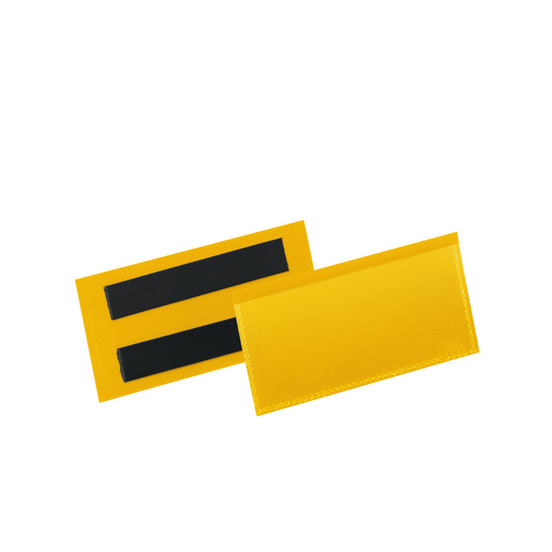 Tasche per identificazione a fissaggio magnetico. Robuste e resistenti all'usura e agli strappi, sono realizzate con retro in plastica colore giallo e copertina frontale trasparente. Proteggono da sporco e polvere i documenti inseriti. Adatte all'uso con scanner. Facile sostituzione dell'inserto.F.to Utile (LxH) 100x38mm. F.to Est. (LxH) 113x53mm.