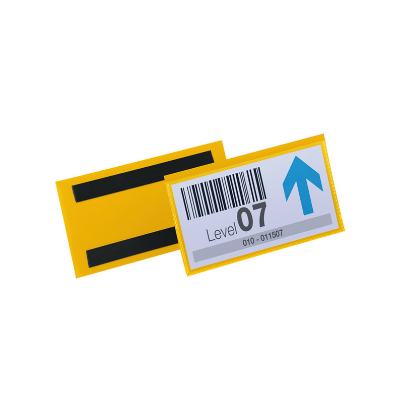 Tasche per identificazione a fissaggio magnetico. Robuste e resistenti all'usura e agli strappi, sono realizzate con retro in plastica colore giallo e copertina frontale trasparente. Proteggono da sporco e polvere i documenti inseriti. Adatte all'uso con scanner. Facile sostituzione dell'inserto.F.to Utile (LxH) 150x67mm. F.to Est. (LxH)163x88mm.