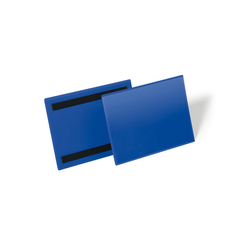 Tasche per identificazione a fissaggio magnetico. Robuste e resistenti all'usura e agli strappi, sono realizzate con retro in plastica colore blu e copertina frontale trasparente. Proteggono da sporco e polvere i documenti inseriti. Adatte all'uso con scanner. Facile sostituzione dell'inserto.F.to Utile (LxH) 210x148mm (A5 orizzontale). F.to Est. (LxH) 223x163mm.