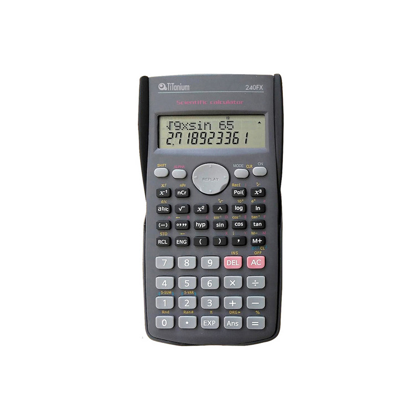 Calcolatrice scientifica dotata di Custodia rigida. Display a due righe: riga superiore Dot Matrix 12 cifre, riga superiore LCD 10 + 2. 240 funzioni; Alimentazione solare (opzionale 2x LR44 incluse). Dimensioni (H x L x P): 186 x 85 x 156 mm. Peso: 115 gr Funzioni: - Cursore per scorrere, richiamare e modificare i calcoli - Display intuitivo, con separatore di migliaia, rappresentazione esponenziale con il simbolo 10, visualizzazione ingrandita della riga superiore. - Guida con menu per calcoli statistici - S-V.P.A.M. - 1 memoria per i totali - 8 memorie per le costanti - Funzione SCI/FIX/ENG - Calcolo percentuale - 24 livelli di parentesi - Funzioni trigonometriche e trigonometriche inverse - Conversione di coordinate polari in coordinate rettangolari e viceversa - Funzioni iperboliche e iperboliche inverse - Calcoli in gradi centesimali, sessagesimali e radianti - Conversione di valori sessagesimali in valori decimali e viceversa - Calcolo automatico delle frazioni - Generatore di numeri casuali - Statistiche bidimensionali con calcolo del valore medio, del valore di stima e del totale - Permutazione, calcolo combinatorio - Calcolo di 6 diversi tipi di regressione e dei coefficienti A e B