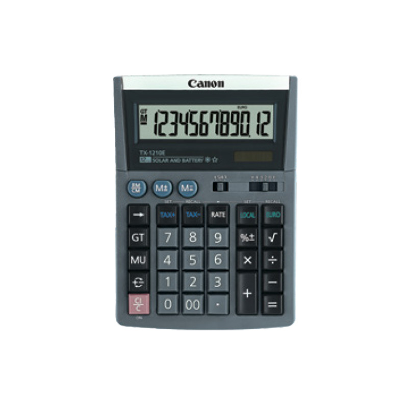 La TX-1210E è una calcolatrice a 12 cifre con un grande display inclinato. Ha una tastiera super resistente, conversione Euro e calcolo TAX.