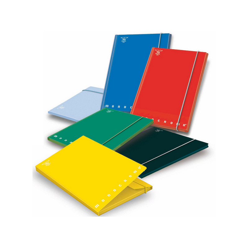 Cartella progetto con 3 alette in cartone rivestito con dorso rigido e chiusura ad elastico piatto. Confezione da 6 pezz in colori assortiti: giallo, verde acqua, blu, turchese rosso, lillà, rosso rosa, verde tiffany,