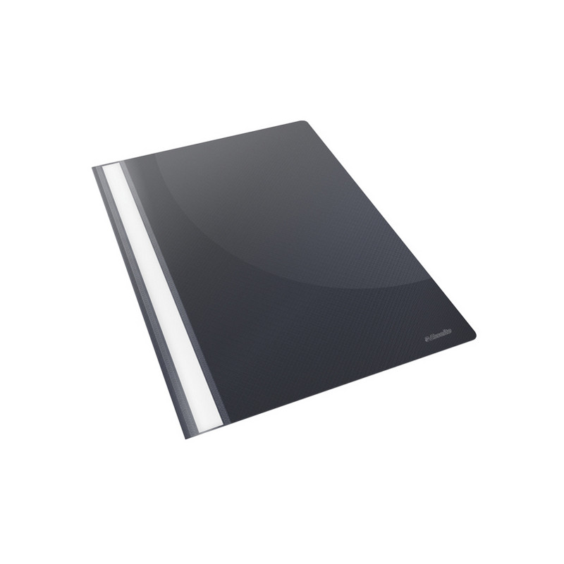 Cartelline Report File realizzata in PPL nero vivida con due linguelle per l'archiviazione di documenti forati. Etichetta longitudinale estraibile. Formato utile: 21x29,7cm.