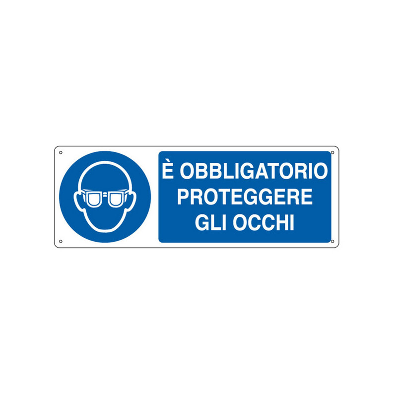 Cartello segnalatore - 35x12,5 cm - E' OBBLIGATORIO PROTEGGERE GLI OCCHI - alluminio - Cartelli Segnalatori