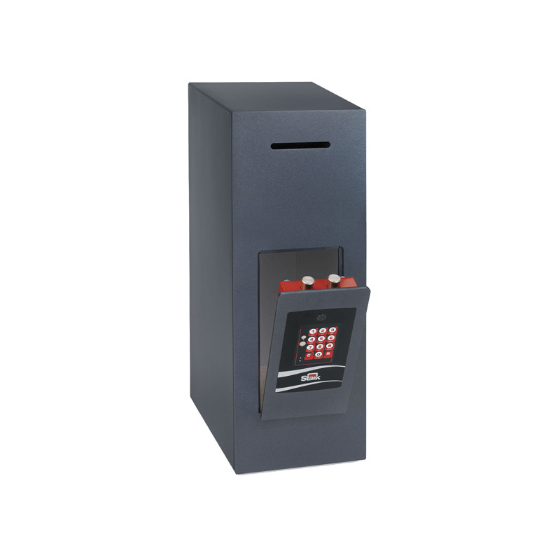 Cassaforte a combinazione elettronica motorizzata, spessore 5mm. Struttura in acciaio speciale, taglio laser, luce di taglio tra cornice e battente di soli 2/10 mm. Apertura a tutto vano. Catenacci in acciaio trattato. Fori di ancoraggio a muro e a pavimento. Dimensioni esterne: 200x570x350mm; Dimensioni interne:195x565x300mm.